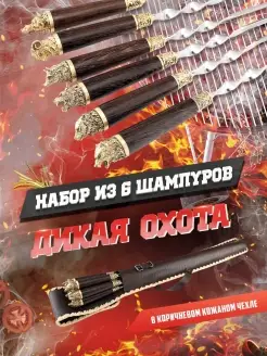 Шампура с деревянной ручкой набор подарочный для шашлыка