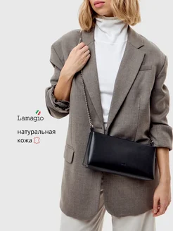 Сумка натуральная замша маленькая багет на цепочке шоколад