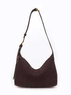 Сумка нубук маленькая через плечо с ручкой шоколадная