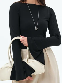 Лонгслив вырез лодочка с рукавами клеш черный нарядный