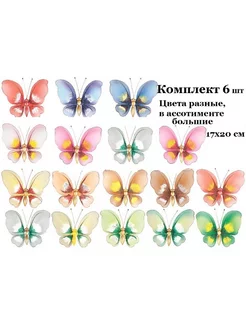 Бабочки декоративные, 17х20, 6 шт цвет микс