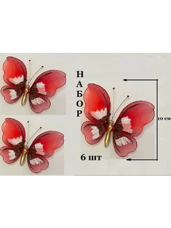Бабочки декорат, металлиз. 15х18, 6 шт, красный