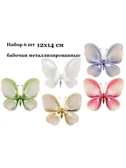 Бабочки декоративный металлиз. 12х14 см 6 шт микс