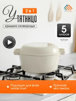 Чугунная эмалированная утятница с крышкой, 6.6 литра