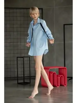 Голубая рубашка хлопок летняя оверсайз длинная