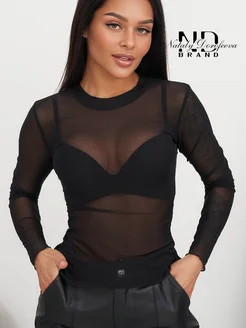 Лонгслив прозрачный оверсайз из сетки мраморный