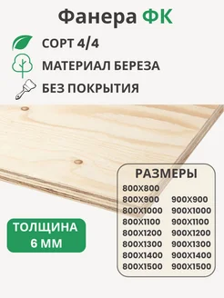 Фанера ФК 6мм Береза сорт 4 4 Размер 800х1100х6мм