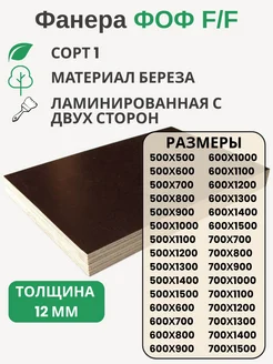 Фанера ФОФ 12мм Береза F F сорт 1 Размер 500х900х12мм