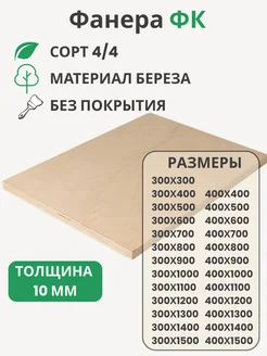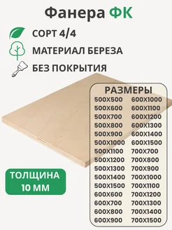 Фанера ФК 10мм Береза сорт 4 4 Размер 500х800х10мм