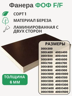 Фанера ФОФ 6мм Береза F F сорт 1 Размер 300х1500х6мм