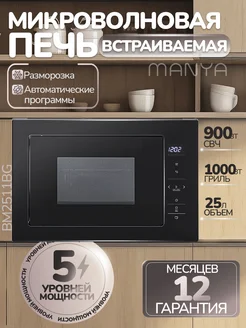 Встраиваемая микроволновая печь с грилем 25л BM2511BG черная
