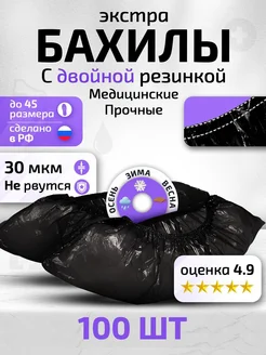 Бахилы одноразовые 100 штук плотные 50 пар 30 мкм