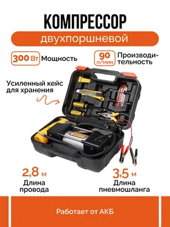 Компрессор автомобильный насос для машины двухпоршневой