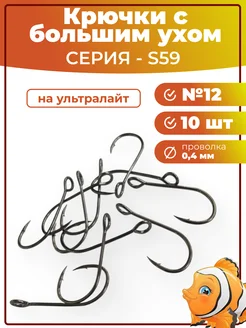 Рыболовные крючки № 12 с большим ушком на ультралайт S-59