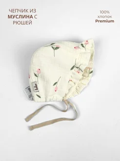 Летняя шапочка муслиновый чепчик с рюшей для новорожденной