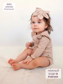Боди кимоно в рубчик с рюшами, с длинным рукавом на кнопках