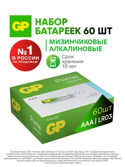 Батарейки ААА мизинчиковые алкалиновые, набор 60 шт
