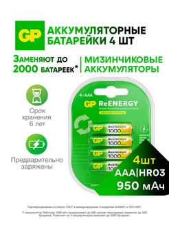 Батарейки ААА мизинчиковые аккумуляторные, набор 4 шт