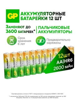 Батарейки АА аккумуляторные, аккумуляторы, 2600 мАч, 12 шт