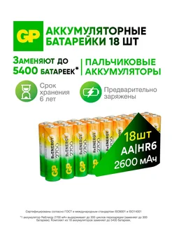 Батарейки АА аккумуляторные, аккумуляторы, 2600 мАч, 18 шт