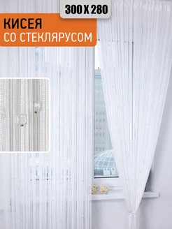 Нитяные шторы лапша кисея со стеклярусом Тюль