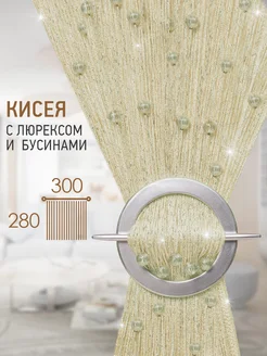 Нитяные шторы лапша кисея люрекс с бусинами 3анавески