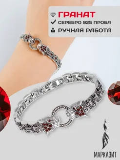 Ювелирный браслет Пантеры из серебра 925 пробы с гранатами