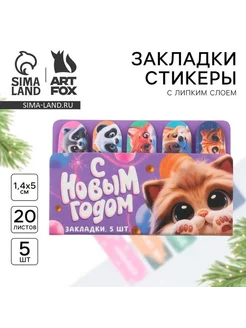 Стикеры для заметок, с липким краем, 20 листов, 5 шт