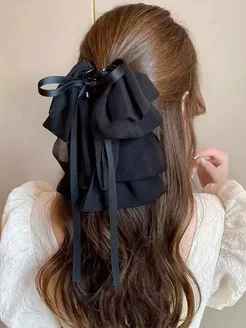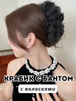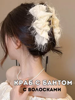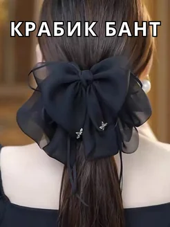 Заколка крабик бантик для волос, большой краб с бантом серый