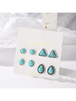 Серьги гвоздики пусеты с бирюзой набор бижутерия