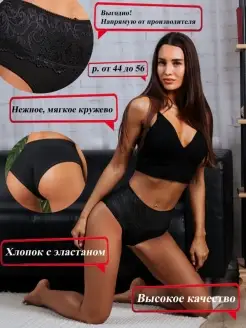 Трусы женские кружевные хлопок слипы высокие сексуальные