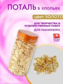 Золотистая поталь в хлопьях для творчества и дизайна ногтей