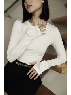 Лонгслив укороченный в обтяжку с вырезом для пальца