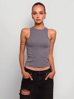Двойная майка топ летняя спортивная в рубчик на бретельках