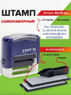 Печать самонаборная 4-стр штамп 48х18 мм, касса