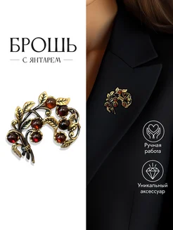 Брошь янтарная Ландыши подарок