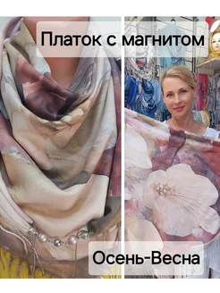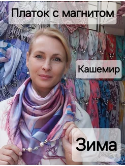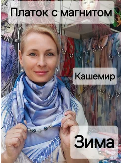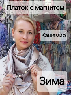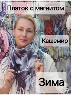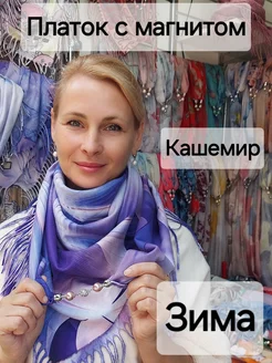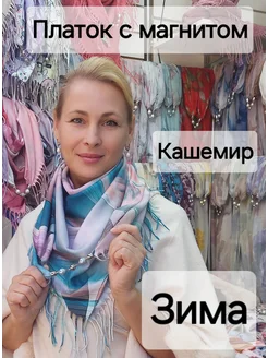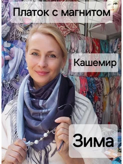 Платок с магнитом кашемир теплый зимний на шею и голову