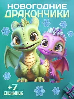 Наклейки на окна новогодние, дракончик, новый год
