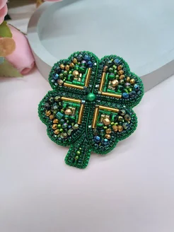 Брошь клевер ручной работы