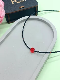 Чокер из черной шпинели с красным кубом