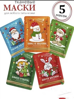 Набор тканевых масок для лица новогодние подарки 5 шт
