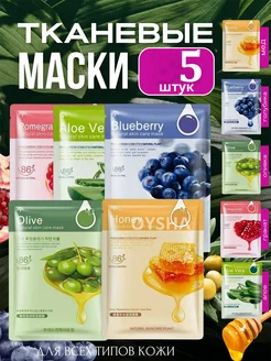 Косметические тканевые маски для лица 5шт подарок на 8 марта
