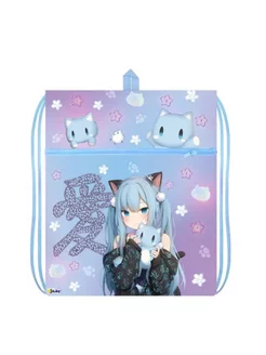 Мешок сумка для обуви с карманом и сеточкой Аниме Нэко 41х49