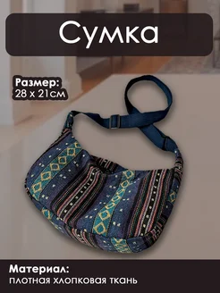 Женская сумка с узором, синяя, 28х21см, 1шт