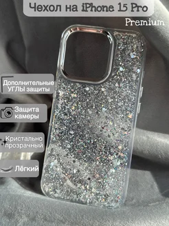 Чехол на iphone 15 pro прозрачный с блестками силиконовый