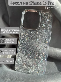 Чехол на iphone 16 pro прозрачный с блестками силикон