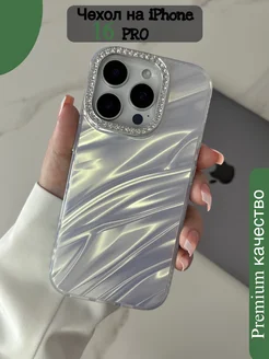 Чехол на iphone 16 pro со стразами волнистым принтом