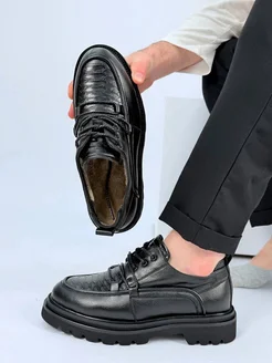 Лоферы туфли зимние кожаные