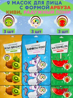 Маски для лица с мордочкой арбуза киви и радужного пони 9 шт