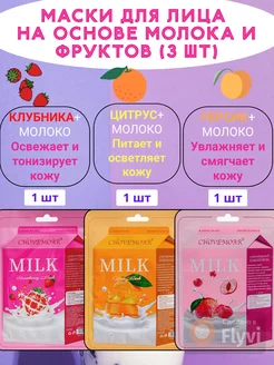 Маски тканевые для лица на основе молока и фруктов набор 3 ш…